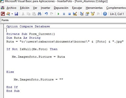 Tengo un informe en access, donde tiene que haber un marco que albergue una foto u otra dependiendo de ciertos valores del formulario.