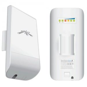 La Ubiquiti nanostation tiene un alcance máximo de 5 Kilómetros y puedes encontrarla en Amazon desde 45€/unidad. El alcance se consigue utilizando dos antenas Ubiquiti, una actúa como emisora de la señal wifi y otra como receptora, de este modo se puede crear un enlace entre dos puntos a 5 kilómetros de distancia.