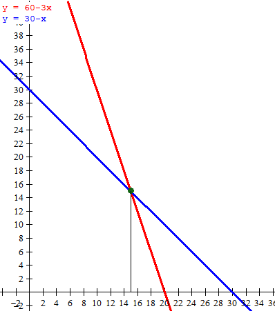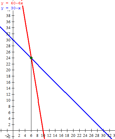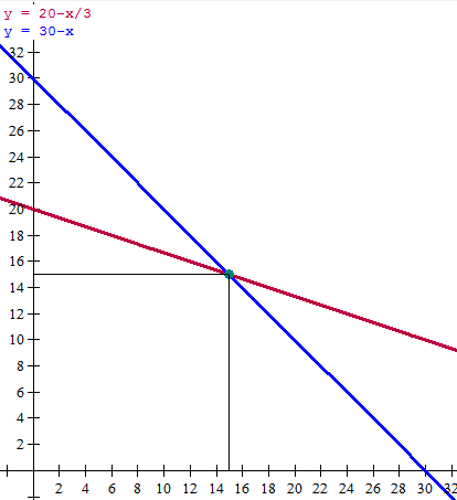 $$\begin{align}&X^D=60-3P_x\implies P_x=20-\frac{X^D}{3}\\&\\&X^D=30-P_x\implies P_x=30-X^D\\&\end{align}$$Esta el la gráfica: