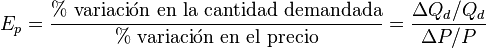 $$\begin{align}&\quad E_p=\frac{P·\Delta Q_d}{Q_d·\Delta P}\\&\\&a) \quad \text{Valores iniciales }\quad P=4;\quad Q=80\\&\qquad\text{Valores finales }\;\;\quad P=6;\quad Q=60\\&\\&E_p=\frac{4·(60-80)}{80(6-4)}=\frac{-80}{160}=-\frac 12=-0.5\\&\\&\\&\\&b) \quad \text{Valores iniciales }\quad P=6;\quad Q=60\\&\qquad\text{Valores finales }\;\;\quad P=10;\;\; Q=20\\&\\&E_p=\frac{6·(20-60)}{60(10-6)}=\frac{-240}{240}=-1\end{align}$$: