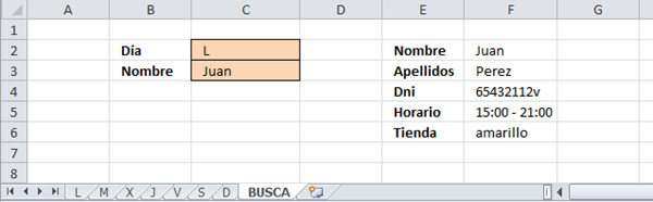 Tengo estas 7 Hojas con los días de la semana y estos datos.