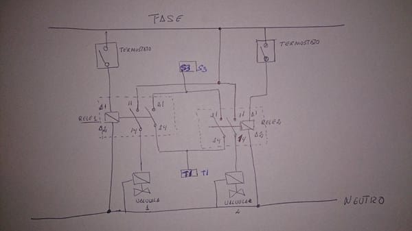 Recurro a ustedes a ver si me pueden echar una mano para conesionar Dos (2) relés a dos termostatos (estos uno en cada planta), que activan cada uno, una de las electroválvulas de las dos que lleva la caldera de ROCA Laura 30/30, porque hasta ahora cada vez que el termostato de una de las válvulas corta por temperatura, la caldera corta el gas y efectivamente no hay llama, pero como que la bomba sigue funcionando, y este ligero ruido por las noches es un poco molesto.