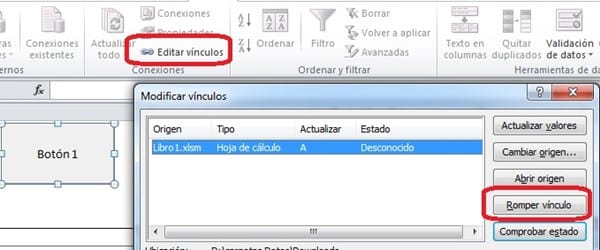 Error de vinculo al abrir archvivo excel