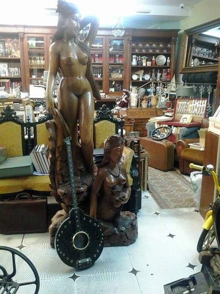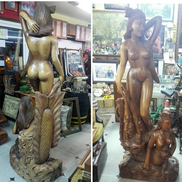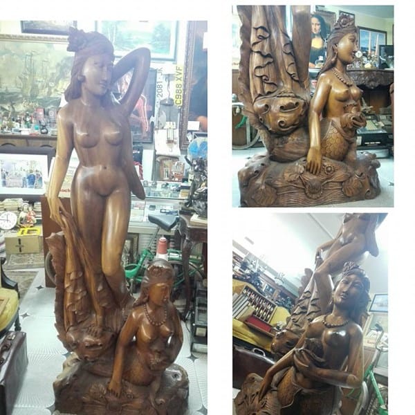 MIDE 2 METROS Y PESA SOBRE 140 KILOS... TALLA DE UNA SOLA PIEZA.. MADERA DE TEKA.. CREO.. Son una mujer y una sirena desnudas.