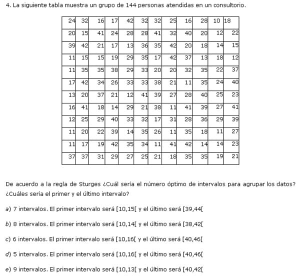 Luego cada clase tiene una amplitud de 4, la primera es [10, 14) y la última [38, 42]