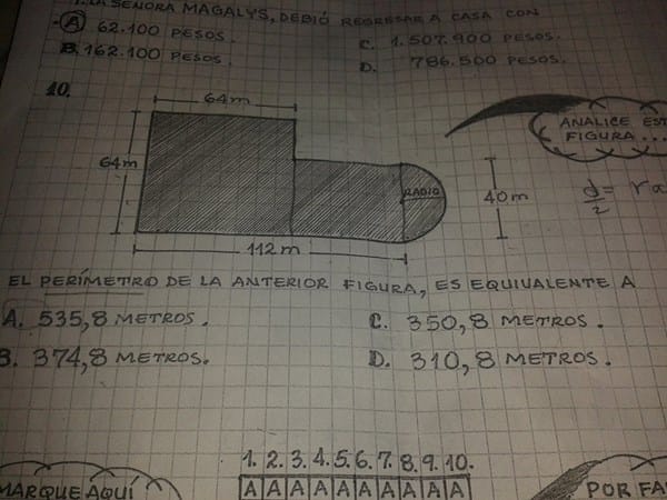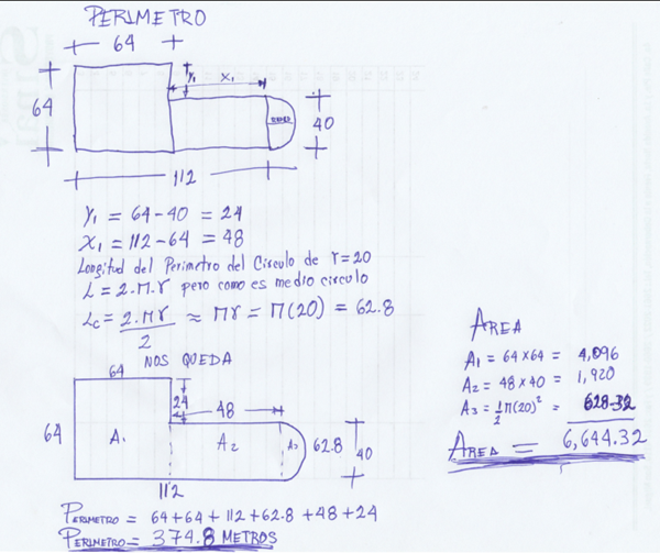 Realizo el proceso de hallar el área pero no me da ningún resultado parecido