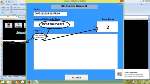 Esa es una parte, la otra es que tenga un contador de los datos que ingreso en el textbox2 (bajo donde dice "Total Carga") y que al finalizar me imprima el formulario o haga un informe y se imprima, ¿se podrá? El código de ingreso de datos del formulario es este :
