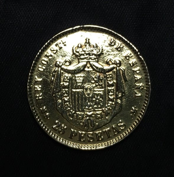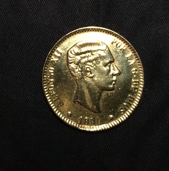 Tengo una moneda de oro de Alfonso XII de 1890 de 25 pts, en perfecto estado. ¿Alguién podría decirme su valor? Adjunto fotos. Muchas gracias de antemano.