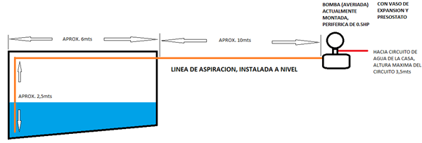 Quisiera cambiar una bomba, ya montada en mi casa (esta averiada), y tengo la duda si volver a instalar la misma u otra bomba diferente, la bomba siempre funciona aspirando por el deposito de agua enterrado de unos 30m3.