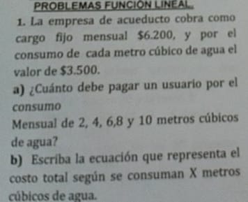 Problema con funciones lineal resolve el siguiente enuciado