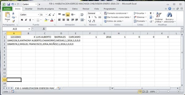Acá en chile existe una página del gobierno que pide subir una lista de trabajadores, pero el archivo debe estar en formato CSV pero además separado por columnas (igual que un excel normal).