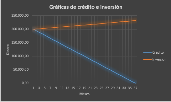 En la siguiente tabla puedes ver los cálculos de los primeros cinco meses para ambas opciones, completa la tabla en un programa de hoja de cálculo. Realiza las operaciones para cada opción, grafica la amortización y el capital en los tres años.