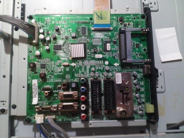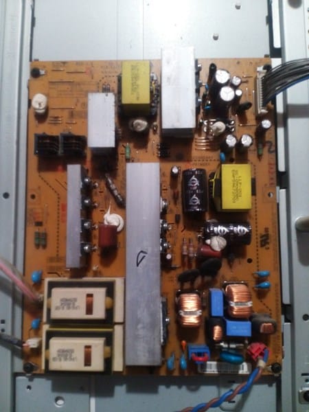 Es que si fuera esa placa solo se cambia y ya esta pero gastarme el dinero para nada pues no aquí pongo unas fotos de la placa que vi el chispazo y de la tele desmontada por si veis algo fuera de lo normal