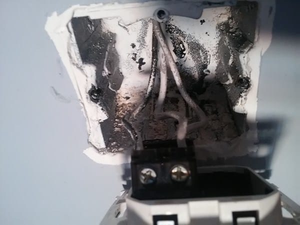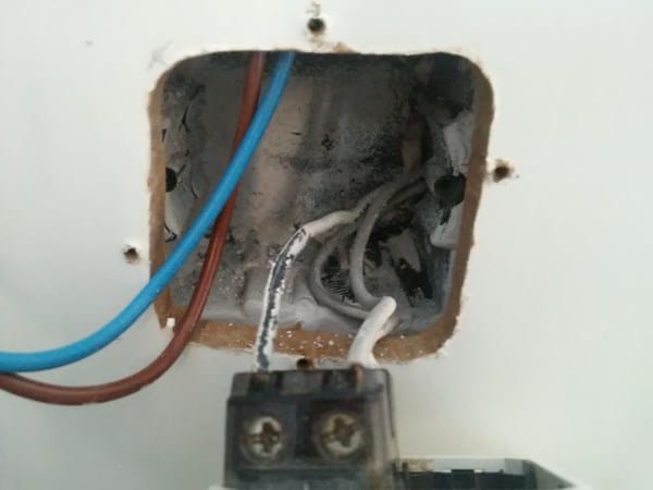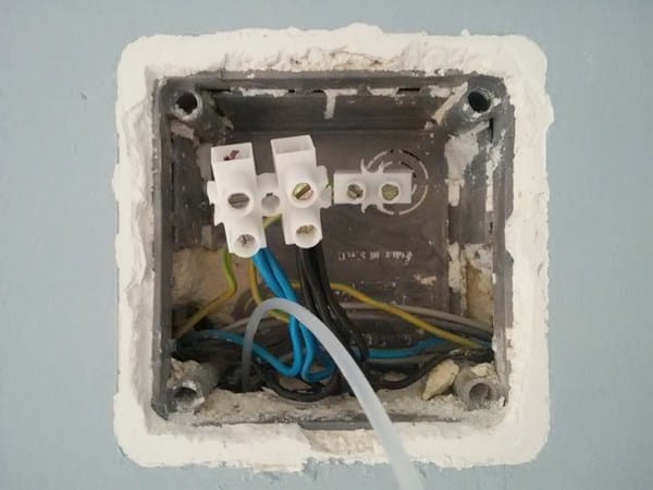 Caja de derivación sobre los conmutadores del cabecero de la cama.