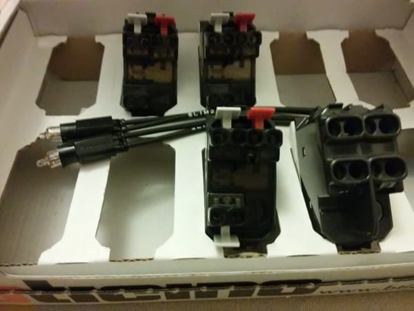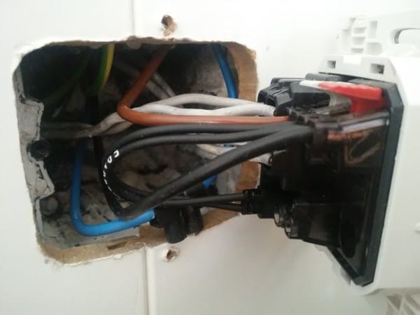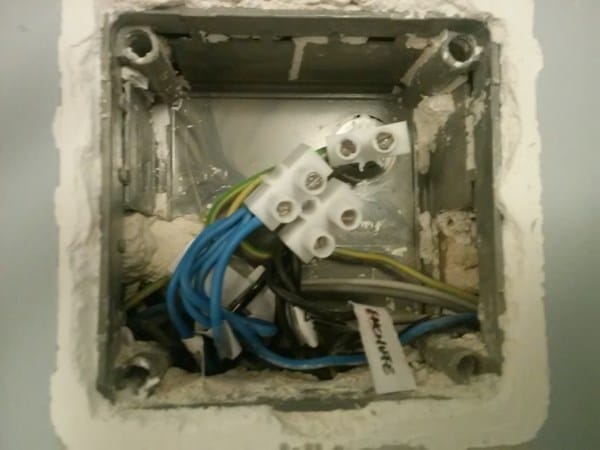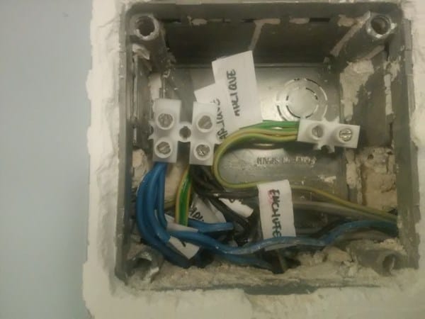 Perdón por el retraso, ya está lista la caja de derivación con todo el cableado en las fichas que corresponden y los respectivos cables desde esta hacia las dos cajas de mecanismos, lo que ilustro a los efectos oportunos, .....