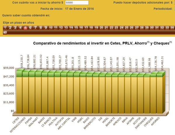 - ¿De cuánto es la diferencia del rendimiento entre los bancos en el plazo a 5 años?