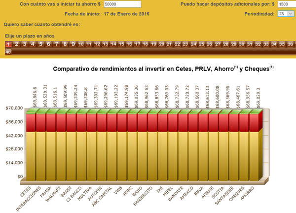 - Si realizas depósitos adicionales a tu inversión (a 28 días) de 1,500.00 pesos, ¿Cuánto se incrementa tu ahorro en los mismos plazos y en los mismos bancos?
