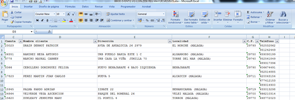 Tengo un listado de clientes con varios datos. Nombre, dirección, teléfono, etc. El problema es que el campo teléfono, en caso de tener dos, en vez de general una nueva columna, esta puesto uno debajo de otro. Es más fácil de explicar poniendo una foto.