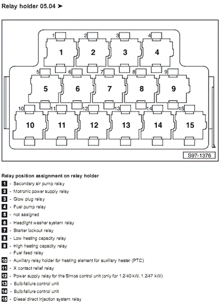2. El relay es de cuatro patas, esta indicado cuales van a la bobina y cuales son los contactos, sacalo y ubica los conectores de los terminales que van a la bobina. Con la llave OFF y un cable a un positivo prueba en los dos agujeros de la bobina, si enciende ese será nuestro negativo, ahora con un cable de la lámpara en masa y el otro en el terminal restante prueba a poner la llave en ON, si no hay respuesta entonces hay un problema complicado entre la ECU (centralita) y el relay.