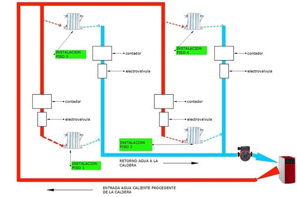 Pero lo que no entiendo como es posible que cuando la caldera este calentado el circuito de distribución, no entre agua en los pisos 3 y 4 ya que la electroválvula esta al final del circuito.