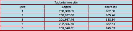 En la siguiente tabla puedes ver los cálculos de los primeros cinco meses para ambas opciones, completa la tabla en un programa de hoja de cálculo. Realiza las operaciones para cada opción, grafica la amortización y el capital en los tres años.