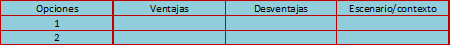 d) Incorpora la tabla con las ventajas y desventajas de cada opción de acuerdo con un escenario específico.