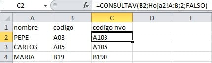 Pepe con codigo A03 tendria segun el listado en tabla2 el nuevo codigo A130 !