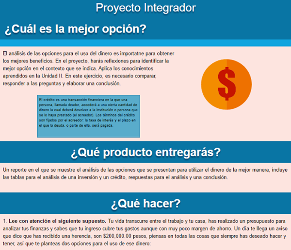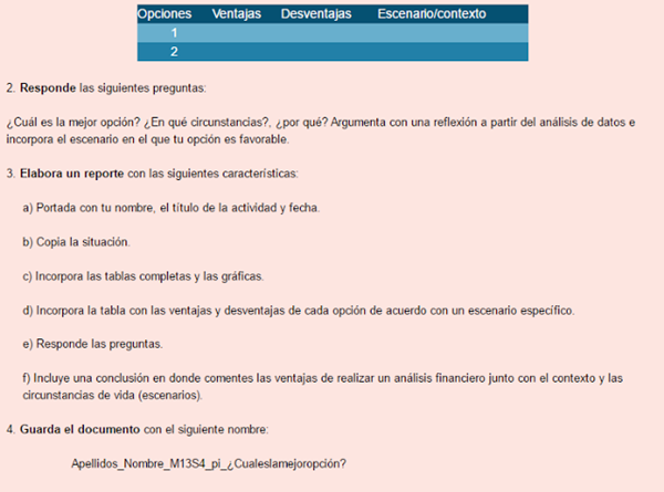 Un reporte en el que se muestre el análisis de las opciones que se presentan para utilizar el dinero de la mejor manera