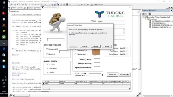 LA línea anterior hará que error anterior no detenga el programa y pase a la siguiente línea después tbl. Open, que es: