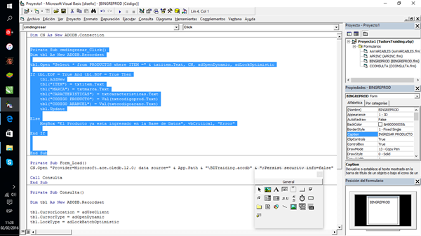 2. Ahora, en esta línea: If tbl.EOF = TRUE AND tbl.BOF = TRUE Then, encuentré un error. Nunca podrá ser verdadera, porque es imposible que el cursor de datos esté al mismo tiempo al final "y" (AND) al principio del Recordset. Para llegar al final del Recordset o Tabla Tienes que usar tbl.MoveNext, para ir cambiando al siguiente registro.