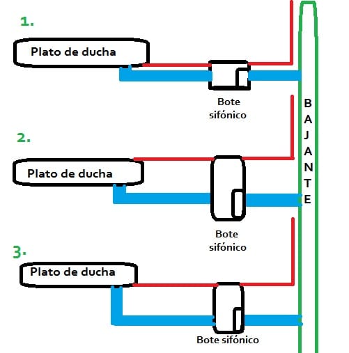 Si el Bote sifónico tiene la profundidad necesaria puede elegir la altura a la que coloca el plato de ducha, pero si esta superficial puede que no tenga alternativa y se vea obligado a ponerlo por encima de la solería.