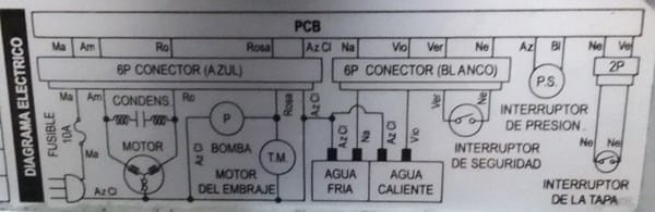 Adjunto el diagrama de la lavadora para su detalle.