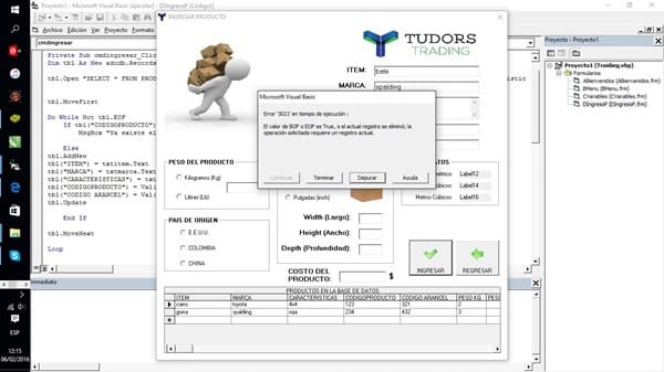 Aquí un nuevo error en el programa que estoy tratando de ejecutar, el programa es sencillo, llenar una base de datos de unos productos, pero que al intentar ingresar me revise primero si ya existe uno con el CODIGOPRODUCTO que se esta introduciendo, de ser así msgbox de existencia, de lo contrario ingresar los datos del nuevo producto.
