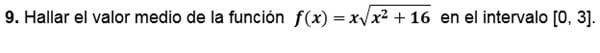 Hallar el valor medio de una función en un intervalo