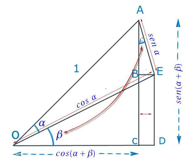 OC=AO·cos(a+b)=1·cos(a+b)=cos(a+b) (*)