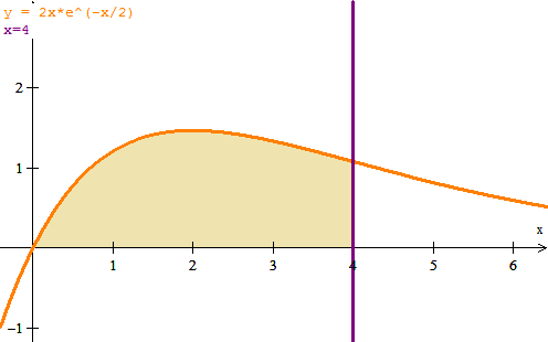 Calcular el área limitada por la curva y=2xe^-x/2.