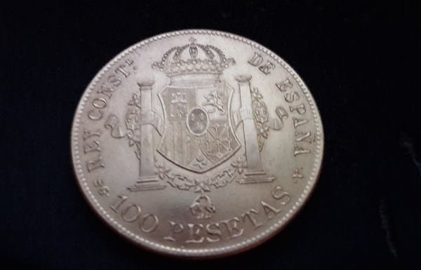 Precio de una moneda (oro) de Alfonso XIII de 100 pesetas de 1897.