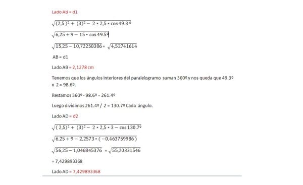 Encontrar lados de un paralelogramo,conociendo sus diagonales y un ángulo.