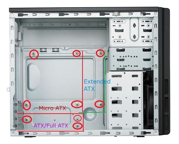 Creo que la clave puede estar en la caja/torre actual del equipo, a pesar de que la inmensa mayoría de torres admiten placas base ATX y Micro ATX, (muchas in cluso soportan tambien E-ATX -Extended ATX-), quizá no sea el caso tu modelo de torre, si te soy sincero ahí me pierdo bastante. Si es posible, por favor toma una captura del interior de tu torre -a ser posible con la placa base retirada- y súbela aquí.