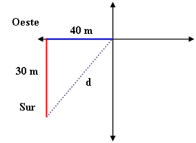 Desde un punto, un móvil parte hacia el oeste recorriendo 40 kilómetro, después recorre hacia el sur 30 kilómetro.