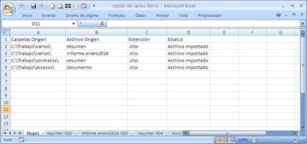 - En la columna D te va a poner el estatus de cada archivo origen.
