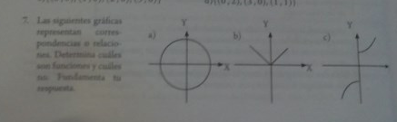 Las siguientes gráficas representan correspondencias o relaciones. Determina cuales son funciones y cuales no. Fundamente tu respuesta.