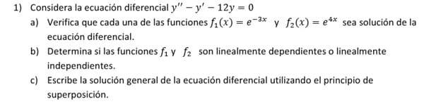 Tengo el siguiente ejercicio ya realice el punto "a" derivando y sustituyendo y determino que los dos son soluciones de la ecuación, en "b" determino que son linealmente independiente por el método Wronskiano, pero para el punto "c" no tengo nada de idea y reviso los apuntes y no los entiendo podrían explicarme el punto 3