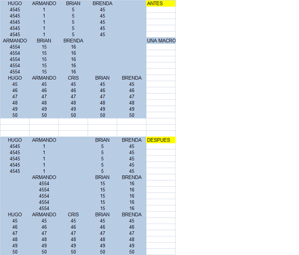 Pero no necesariamente la fila con más nombres contiene todos los nombre, podrías tener en una 1: