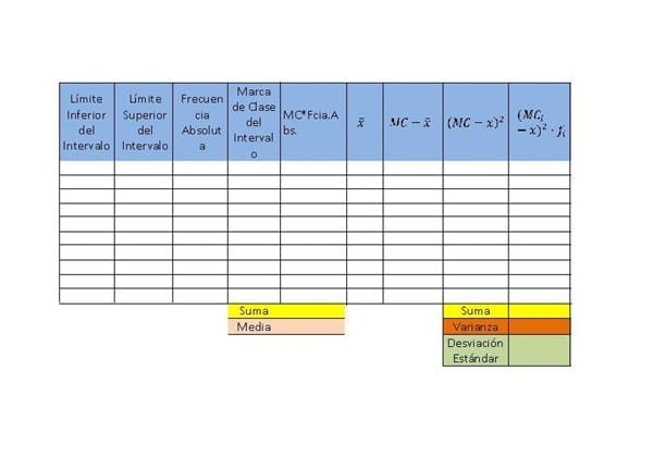 $$\begin{align}&NC=Númerodeclases\\&MC_i=Marcadeclasedelaclasei\\&f_i=Frecuenciaabsolutadelaclasei\\&n=Númerodedatos\\&x ̅=Mediadelosdatos\\&\end{align}$$