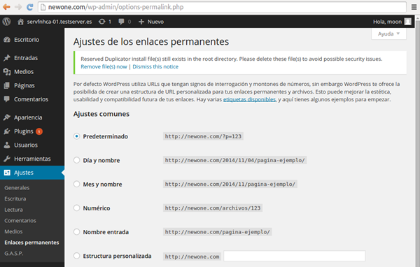 4. "File Cleanup": Duplicator nos abre el administrador de WordPress nuevamente para eliminar los ficheros de la instalación.