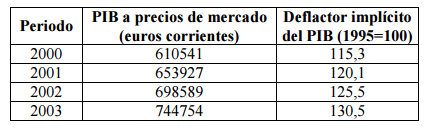 Y para expresar el PIB en euros corrientes de los de 1995 se divide el PIB entre el deflactor y se multiplica por 100