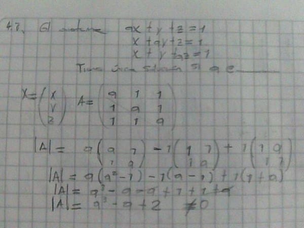 Matrices: el sistema tiene ùnica soluciòn si a pertenece __________