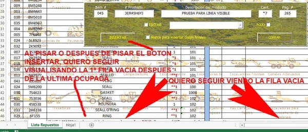En Excel, con form ejecutandose, quiero ver siempre la fila desocupada despues de la ultima ocupada
