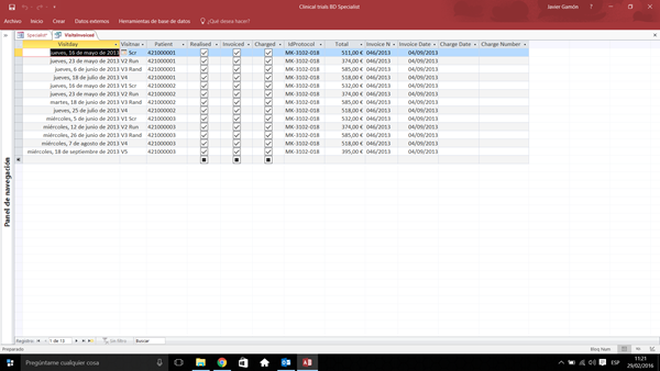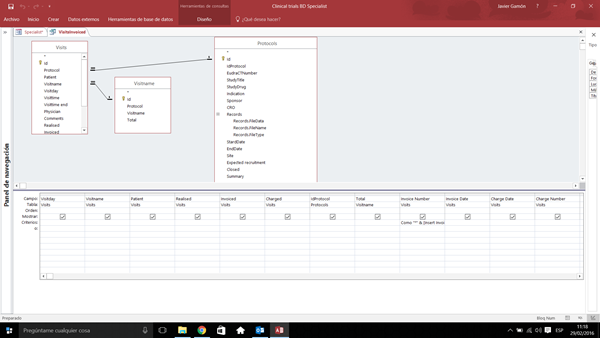 Por ahora ningún problema... El problema principal es que para cada Protocol existen diferentes visitname (por ejempo visita v1, v2, etc...) con un precio determindo... Pero esos mismos nombres (v1, v2, etc...) que están en una tabla con los campos visitname, protocol, total,, se pueden repetir en diferentes protocolos con importes diferentes... Al parecer se me cruzan totales de otros protocolos aunque el que yo quiera sólo sea el que aparece en pantalla que es el que corresponde a la factura que me pide...